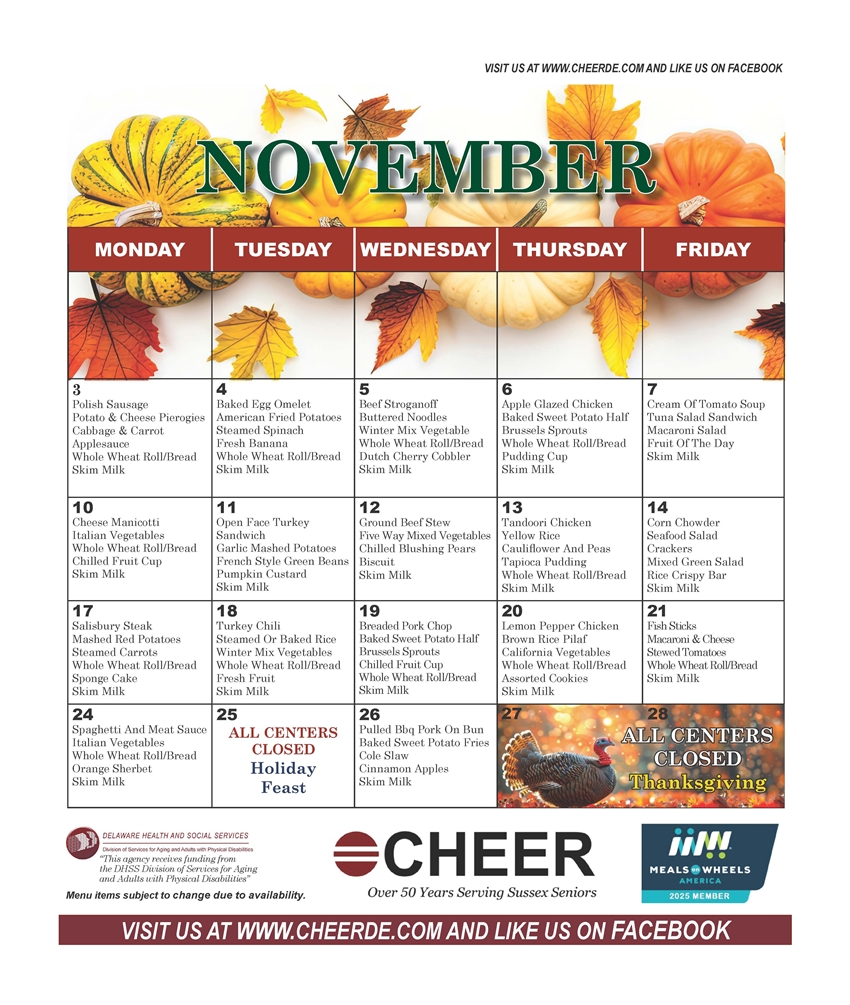 Meals On Wheels service is available to eligible homebound adults aged 60 plus throughout Sussex County.