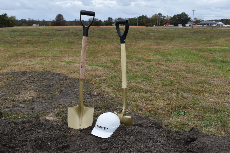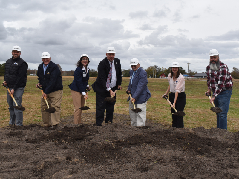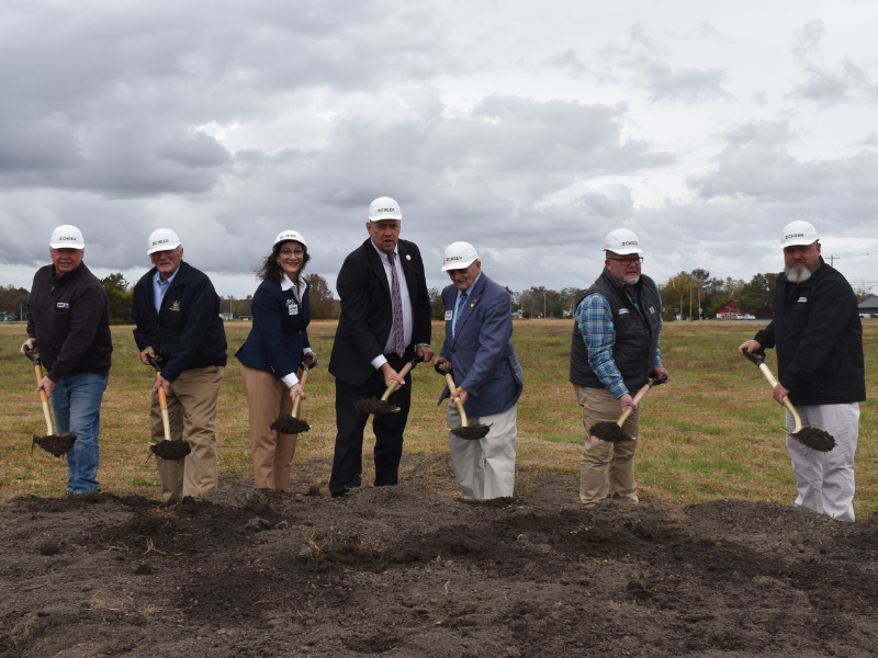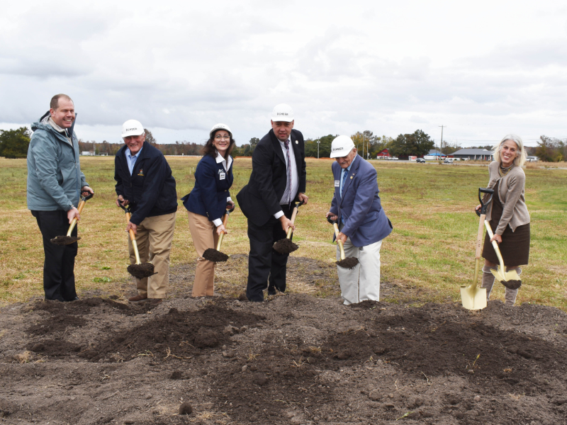 (l-r) BECKER MORGAN GROUP: Civil Engineer Jonathan Richard, Senator Dave Wilson, CEO Beckett Wheatley, Senator Brian Pettyjohn, CHEER Board President Walt Koopman, Project Lead and Architect Kelsey Segraves Fields and Landscape Architect Chad Carter