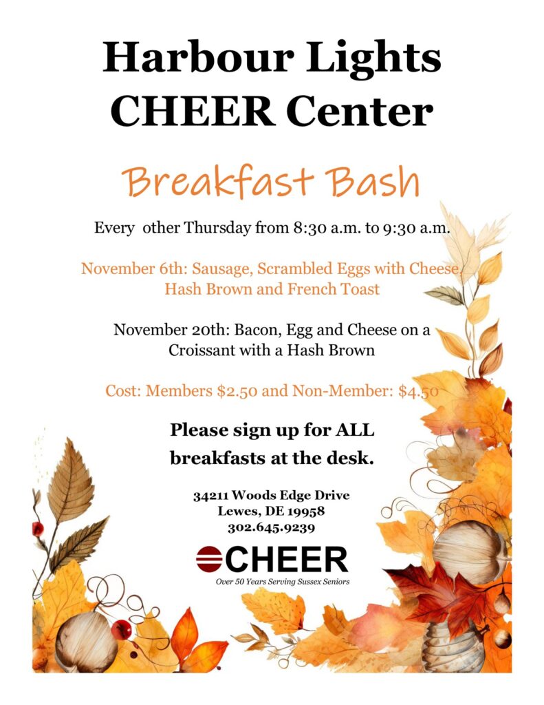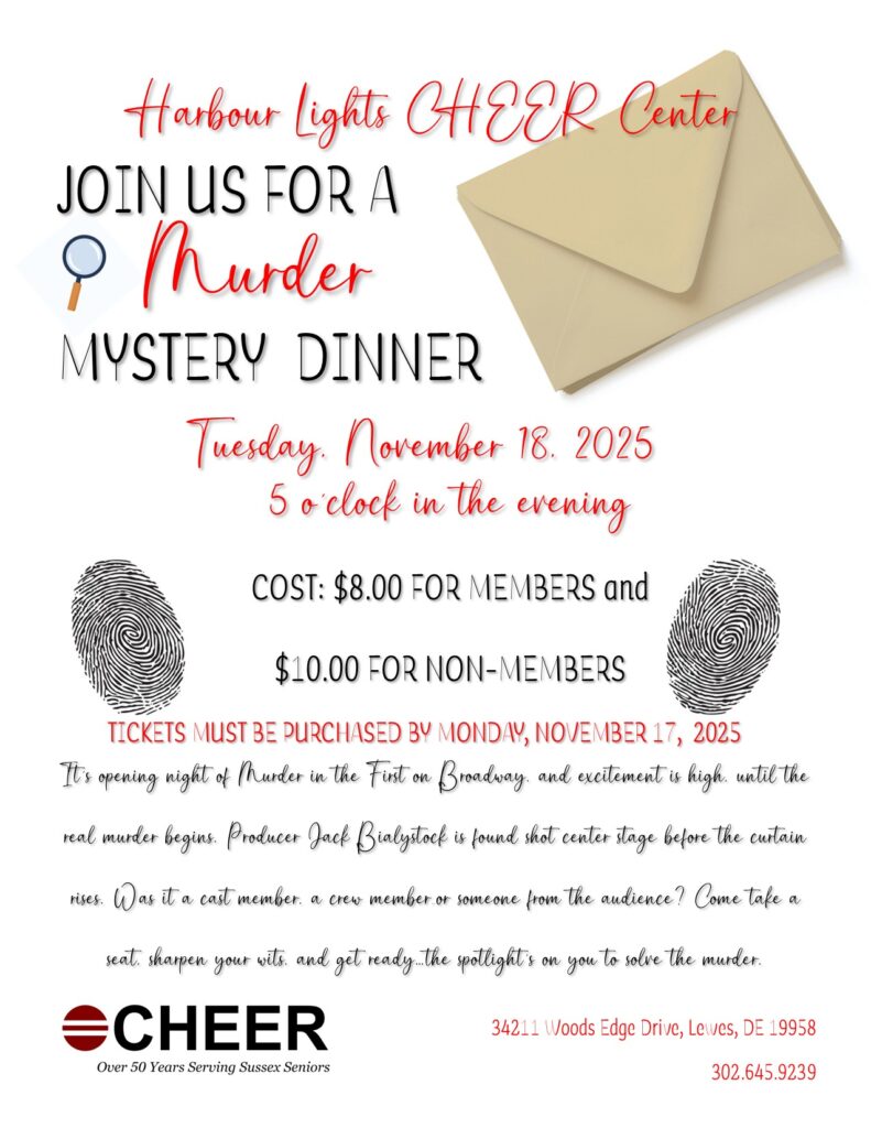 “Harbour Lights CHEER Center is your home away from home. We are one big family that helps one another anyway that we can. We offer a wide variety of fun programs, interesting classes, great services and so much more. Harbour LIghts is also the home of the Southern Delaware Orchestra. We would love to have you come to the center and join our family for lunch or for one of our fun activities”.