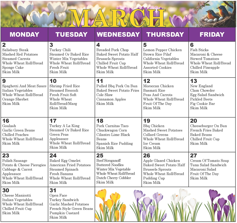 The CHEER Nutrition Program serves heart-healthy meals.All menus are approved by the State Dietitian.A donation is requested for meals. DOWNLOAD MENU