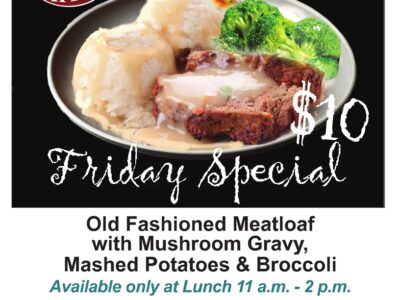 Starting November 7 CHEER’s Sand Hill Café is serving Friday Special Lunches for your pleasure. This week’s special lunch is old fashioned Meatloaf with Mushroom Gravy, Mashed Potatoes & Broccoli. The Special Lunch is available from 11 a.m. to 2 p.m. at CHEER’s Sand Hill Café located at 20520 Sand Hill Road (east of the …